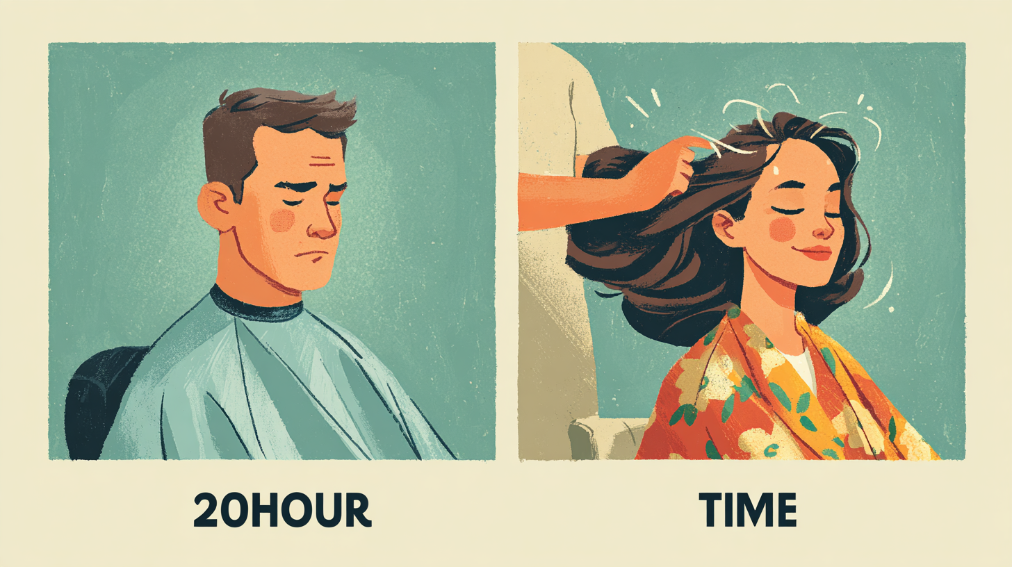 • 노동 시간의 차이: 일반적으로 여성의 헤어스타일링은 더 긴 '노동 시간'을 요구합니다. 디자이너의 시간은 미용실 입장에서 가장 중요한 비용이자 자원입니다.